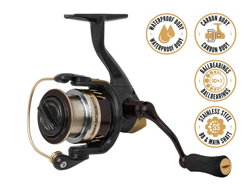 A Delphin ANTIGRAVITY egy prémium minőségű rendkívül könnyű orsó, melyet az igényes horgászok is értékelni fognak. A rendkívül alacsony tömeget a karbon test és a könnyített fém dob biztosítja. Az ANTIGRAVITY kompakt méreteinek köszönhetően ideális társ pergetésnél, valamint úszós horgászatnál, vagy light feederezésnél. A test belsejében egy pontosan kialakított, 5,2:1 áttételű mechanizmus található, amely a 10+1 csapágy rendszerrel biztosítja a nagyon sima futást. A csapágyak ráadásul rozsdamentes anyagból vannak, így biztosított a hosszú élettartam melyhez még hozzájárul a vízhatlan orsó test. A fém hajtókar ráadásul egyenesen belecsavaródik az orsótestbe, így nem keletkezik semilyen mozgás. A hajtókar kényelmes fogását a puha EVA hab biztosítja. A karbon alátétes első fék, lehetővé teszi a precíz fékerő beállítást. A sekély könnyített dob dobóéllel lehetővé teszi a pontos dobásokat. Az ANTIGRAVITY minden méretéhez szükség szerint vásárolható alumínium pótdob.
