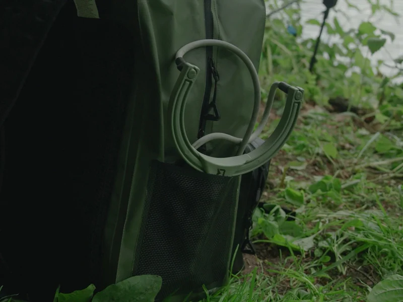 A visszafogott zöld-fekete dizájnt olyan funkcionális elemek egészítik ki, mint például a cipzárak húzókái, valamint olyan stílusos elemek, mint az egyedi pontyos tematikájú "OutLine" logó. Habár az OutLine logó főként a pontyhorgászok körében népszerű, a hátizsák minden horgászmódszerhez, sőt egyéb szabadidős tevékenységekhez is kiváló választás.