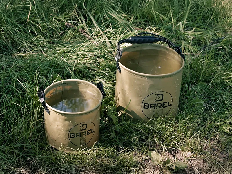 A Delphin BAREL egy hasznos eszköz, amely rugalmas EVA anyagból készül, emiatt összecsukható és könnyen tárolható. Alkalmas a fogás vízzel történő locsolgatására a matracon egy-egy fárasztás után, amíg a fényképezéshez készülünk. Azonban különböző más célokra is használhatja, amikor vizet kell tárolni, például etetőanyagok bekeverésére vagy kézmosásra, ezenkívül szerszámok és csali tárolására is alkalmas. A BAREL tömör fekete fogantyúja zsinórral is rendelkezik, amely lehetővé teszi a vízmerést nagyobb távolságból, meredekebb partoldalról vagy csónakból is.