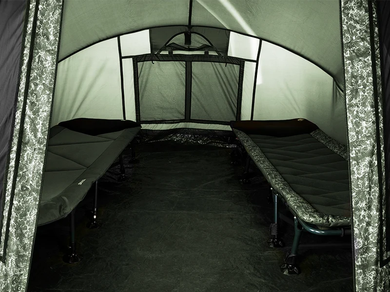 A sátor méreteinek köszönhetően könnyen elfér 2 ágy, miközben továbbra is bőséges mozgásteret biztosít, de a táskák és egyéb felszerelések számára is, amelyek a vízparti kellemes tartózkodáshoz szükségesek. Szükség esetén a belső tér akár 3 ágyat is be tud befogadni. Természetesen a botok rögzítésére szolálló két fogantyú is, de a nagy méretű napellenző is, amely védelmet nyújt a nap vagy az eső ellen. Belül a sátor mennyezetén 2 kampó is van, amelyekre például lámpát is fel lehet függeszteni.