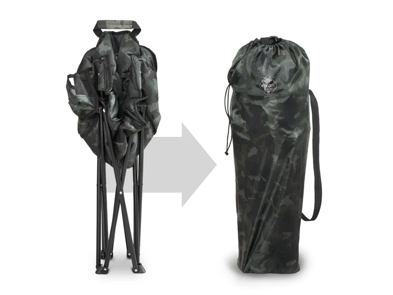 A szék oldalán praktikus zseb található, amelybe elteheted kedvenc italodat, telefonodat vagy egyéb apróságokat. A kényelmes szállításhoz a FOLDIX fogantyúval és tépőzárral is fel van szerelve, így könnyedén rögzíthető szállítás közben.