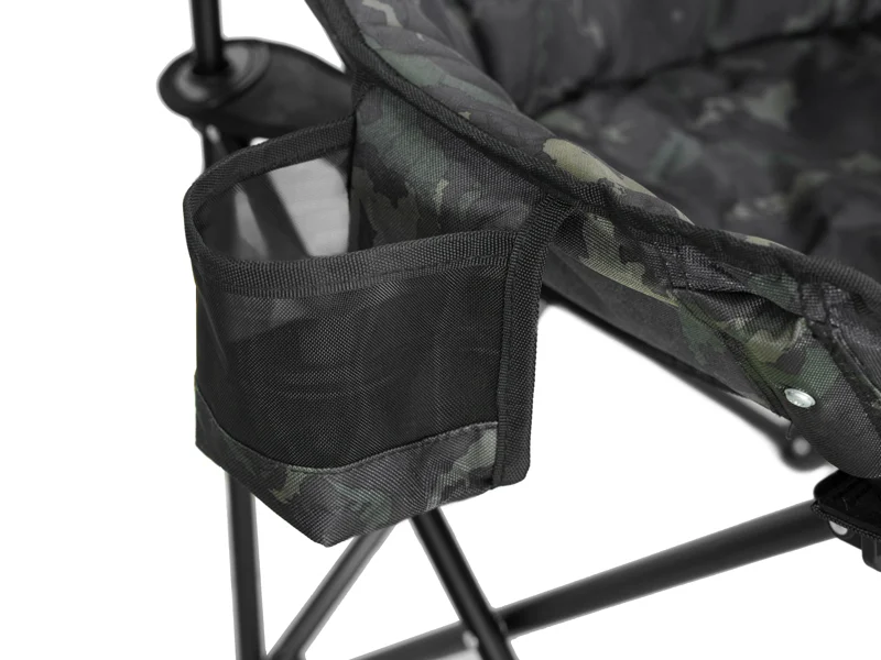 A kényelmet a matrac belső és peremrészein található puha töltet biztosítja. A külső borítás strapabíró 600D szövetből készült, amelyet az eredeti BANX álcázás díszít. Ez nemcsak egyedi megjelenést biztosít a széknek, hanem növeli az anyag ellenálló képességét is a gyakori használat során.