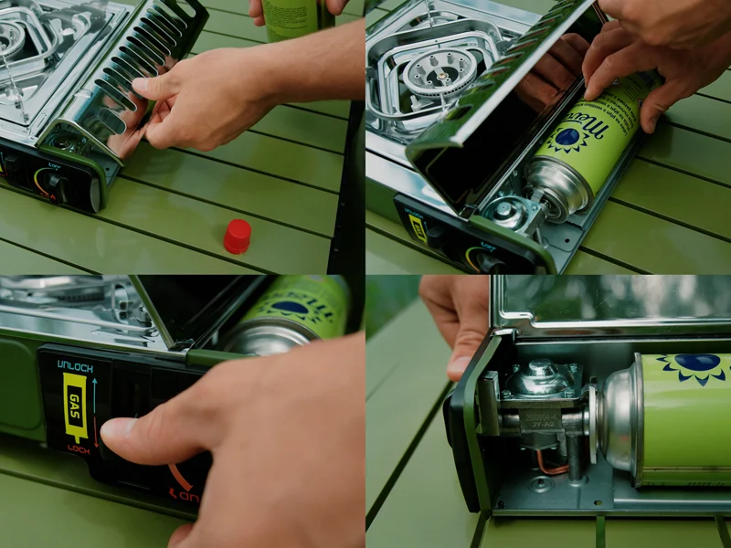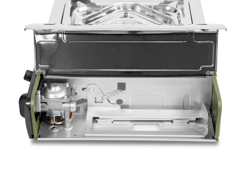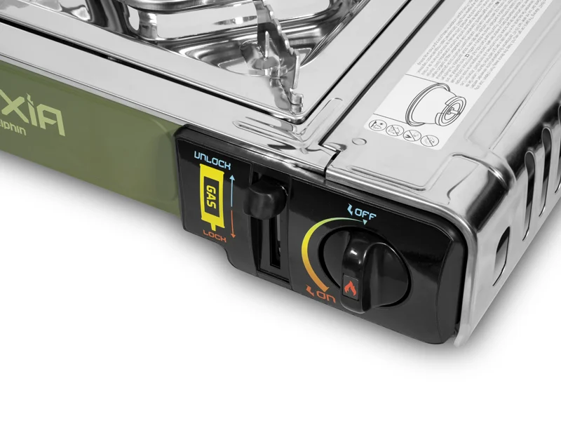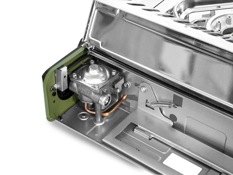 A főző CP250 típusú, 400 ml-es propán-bután gázpatronnal működik. Kétfokozatú biztonsági rendszerrel van ellátva, amely maximális biztonságot nyújt használat közben. A láng begyújtásához először rögzíteni kell a patront a főző elején található karral. Ez jelentősen csökkenti a véletlen gázszivárgás vagy automatikus kiengedés kockázatát.