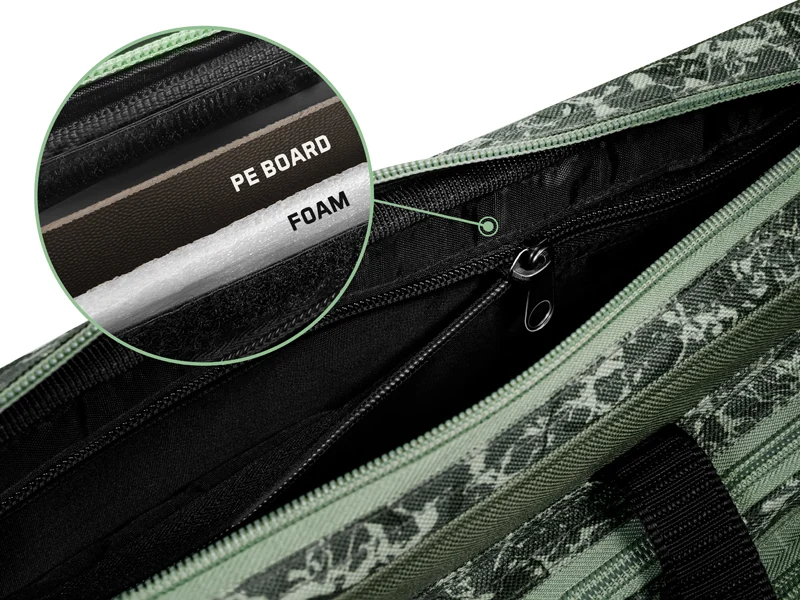 Szállítás közben a kényelemről a vállra akasztható pánt extra puha párnázata, valamint kézben szállítva a praktikus fogantyúk gondoskodnak.