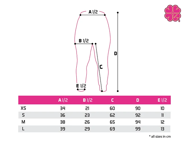 Merész rózsaszín színben készül, fekete elemekkel és sárga nyomatokkal, aminek köszönhetően viselője biztosan ki fog tűnni a vízparton. A nadrág elején egy négylevelű lóhere formájú grafika látható Delphin logóval, ahol a levelek nyolc horgot formálnak meg, amik így szívekre is hasonlítanak.