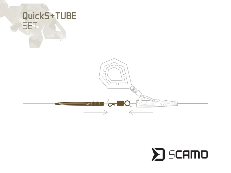 Egy praktikus szett, amely a QuickS gyorskapcsos forgó és egy sCAMO sorozatba tartozó anti-tangle hüvely kombinációja. A gyorskapcsos forgó lehetővé teszi az előre elkészített előkék villámgyors cseréjét, míg az anti-tangle hüvely biztonságosan rögzíti az előkét, megakadályozza annak lecsúszását, és dobás közben megelőzi a szerelék összegabalyodását. A hüvely felületi struktúrája és zöld színe vízinövény-szárat imitál, így tökéletesen beleolvad a környezetbe, rendkívül diszkrét és feltűnésmentes megjelenést biztosít. A hüvely teljes hossza 55 mm, a felső részén pedig 5 milliméterenként elhelyezett bevágások találhatók, amelyek segítségével egyszerűen a kívánt hosszra rövidíthető.
