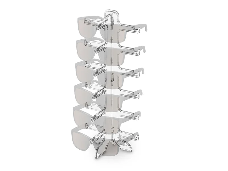 A Delphin SG-STAND praktikus megoldást kínál akár hat napszemüveg rendezett és hatékony kihelyezésére. Tartós, átlátszó műanyagból készül, amely ellenáll a mechanikai sérüléseknek, miközben kiemeli a rajta elhelyezett termékeket. Az állvány függőleges kialakítása rendkívül helytakarékos, így nemcsak üzletekbe, de otthon használatra is ideális választás lehet. Két egymásba illeszkedő részből áll, amelyeket könnyedén össze lehet pattintani – így azonnal használatra kész az állványunk. Az SG-STAND kiváló választás napszemüvegek, polarizált szemüvegek vagy hagyományos szemüvegek stílusos és hatékony kiállítására.