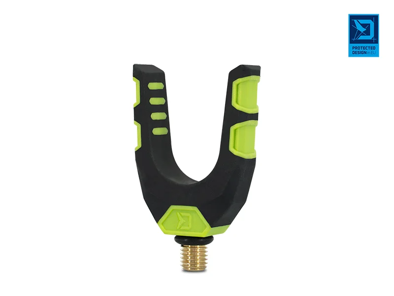 A Delphin Reaxe innovatív feeder sorozatunk színeiben tervezett „U” alakú alapbottartó. Nagyon részletesen kidolgozott, erős és tartós. Az „U” forma lehetővé teszi a különböző nyélátmérőjű botok használatát. Felülete gumírozott anyaggal van bevonva, amely megvédi a botokat a sérülésektől. Ez a bottartó erős anyagokból készül, így nem sérül vagy karcolódik meg könnyen. Univerzális menettel rendelkezik, amely kompatibilis az összes szabvány karral, tartóval és leszúróval. A tartó szárán lévő gumis rész megakadályozza annak elfordulását.