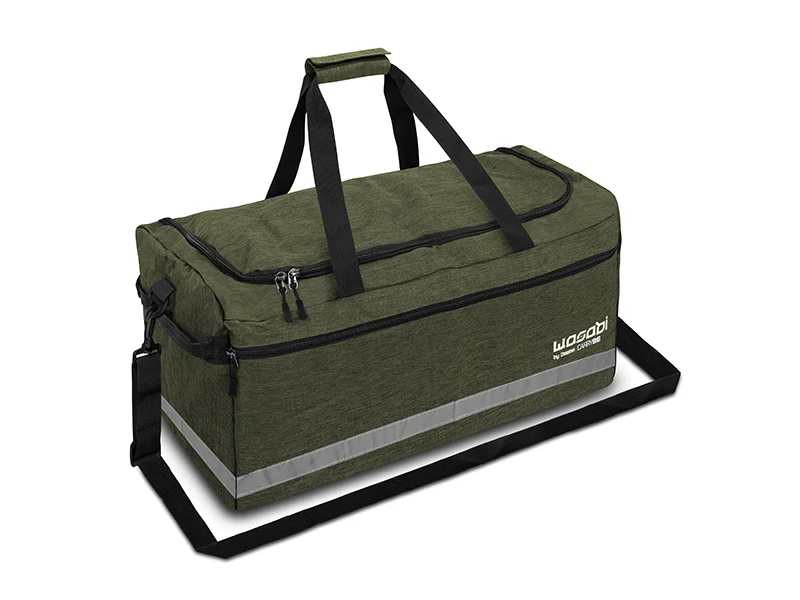 A kényelmes szállítás érdekében a táska levehető, hosszában állítható vállpánttal, valamint két kézi hordozófogantyúval van ellátva. Minden pánt gondosan megerősített varrásokkal készült, így a WASABI CarryBig táska a nehezebb terhek szállítására is alkalmas, anélkül, hogy sérülést szenvedne. A táska alsó részén körbefutó fényvisszaverő csík növeli a biztonságot, és segíti a táska könnyebb azonosítását gyenge látási viszonyok között, például éjszaka.