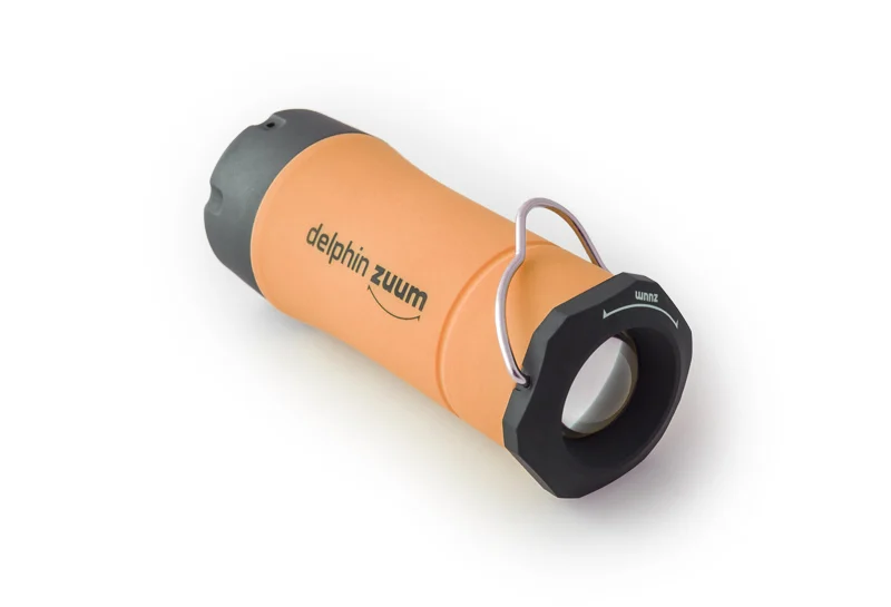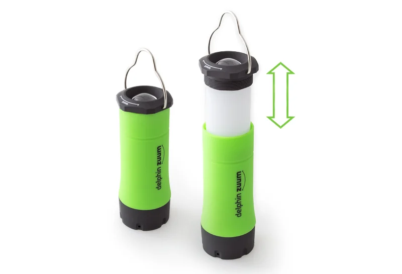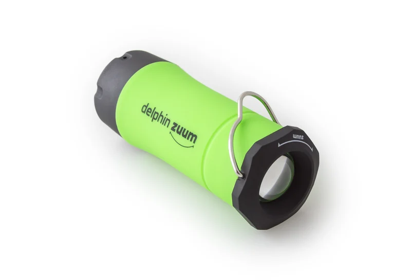 Ez a lámpás önhordó bárhova letehető, vagy a horognak köszönhetően felakasztható. Ennek a lámpának a lehetőségeinek itt nincs vége. A benne lévő LED három módban működik: erős fény, tompított fény és villogó mód. Ahogy lássák a Delphin ZUUM felhasználhatósága végtelen, a klasszikus kézilámpától a sátormegvilágosításig bárhol használható….. A Delphin ZUUM testrésze 3 színben van: zöld, narancs és kék.