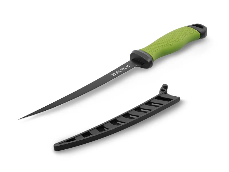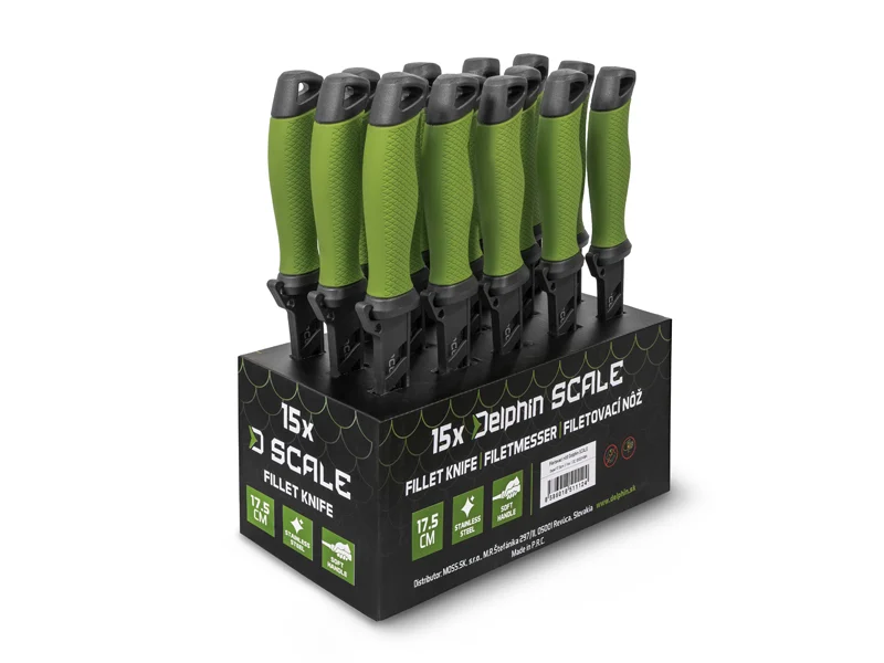 Valljon szakáccsá horgászútjai vagy túrái során egy kiváló minőségű Delphin SCALE filézőkéssel. Az éles rozsdamentes acél penge precíz és hatékony munkát tesz lehetővé húsok, halak, zöldségek és egyéb összetevők előkészítése során. A keskeny hegy és a penge rugalmassága jól jön, ha filézni vagy csontozni szeretne, a penge speciális formája pedig kényelmes szeleteléshez és vágáshoz. A penge sok használat után is nagyon éles marad.