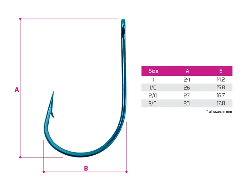 Ezt a horgot kifejezetten élő vagy döglött halakkal való horgászathoz tervezték. A kék árnyalatai a klasszikus színekhez képest diszkrétebbek a víz alatt. Ez döntő szerepet játszhat egy olyan óvatos hal megtévesztésében, mint a süllő. A horog öble nagy a szára pedig rövid, ez lehetővé teszi a csali könnyű felhelyezését és a természetes prezentálást. A kovácsolt test nagy tartósságot biztosít, és simán átüti a halak kemény száját, hogy garantált legyen a fogás.