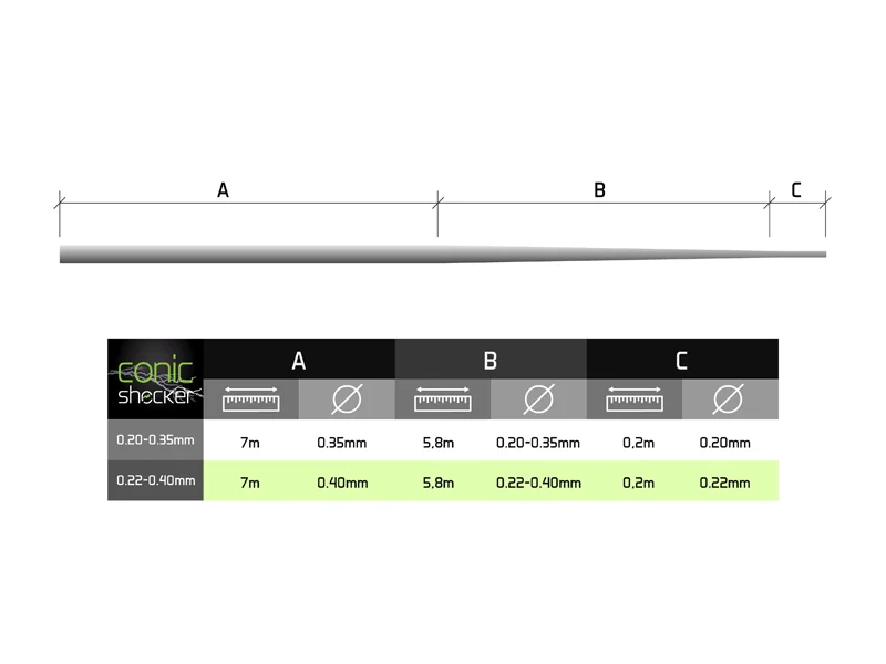 A Delphin Conic SHOCKER REAXE egy vékonyodó dobó előke, amely új dimenzióba emeli a nagy távolságokra történő dobást! A REAXE név olyan átmérőket takar, amelyeket kifejezetten feeder vagy method feeder horgászathoz terveztek.