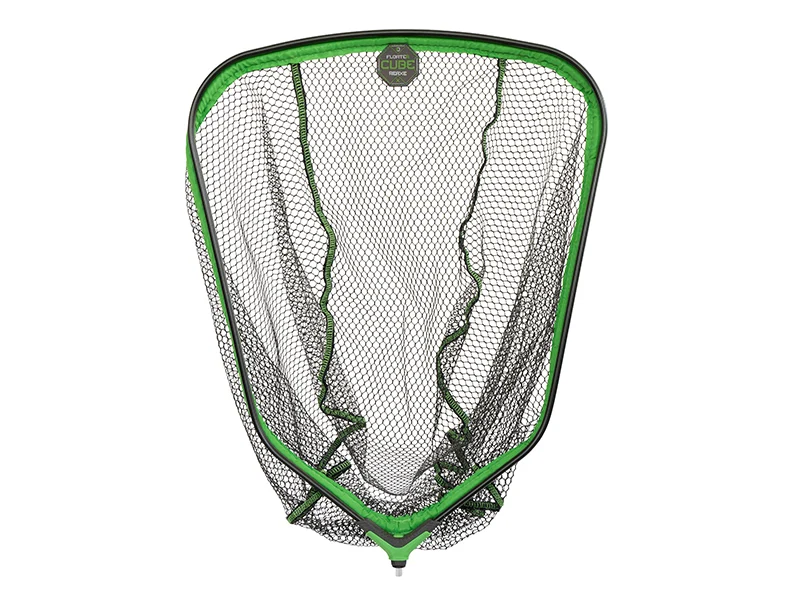 Lebegő kialakítású, négyzetalakú merítőhálófej a REAXE sorozatból, könnyű, de masszív fekete alumínium kerettel. A FloateR CUBE hálója gumival borított, ezért nem szívja magába a vizet és gyorsan szárad. Ráadásul a keret alsó része teljes egészben zöld szövettel borított, a tartósság növelése érdekében.