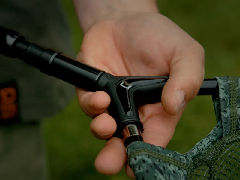 A kétrészből álló nyél kellően merev, mégis könnyű, így a szákolás igazi élménnyé válik. A felső rész szintén teleszkópos, így szükség esetén akár 1,8 méterre is meghosszabbítható. Egy rögzítő biztosítja, hogy a teleszkópos rész szállítás közben ne nyíljon ki véletlenül.