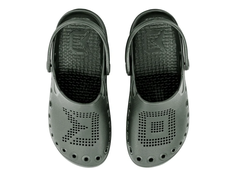Egy másik kifinomult elem a nagy méretű oldalnyílások, amelyek elsődleges feladata a szellőzés. Szándékosan nem a talp magasságában vannak kialakítva, mint az szokásos, hanem valamivel magasabban. Ez a részlet fontos szerepet játszik a parton vagy sekély vízben való tartózkodás során. Azáltal, hogy a furatok valamivel magasabbak a talpbetét felett, a homok vagy a kövek nem kerülnek be egyszerűen a papucs és a talp közé. Tehát a lábad a lehető legnagyobb mértékben védett. Ezen nyílások mellett a felső részen elhelyezett sűrű perforáció is a szellőzésre szolgál. Az egyik oldalon szándékosan a Delphin logóból származó D szimbólum alkotja, a másik papučon pedig az O szimbólum az OCTO név kezdőbetűjeként uralkodik. Az összbenyomást tovább növeli a talp felszínén található finom szerkezet, amely a tintahal bőrét idézi. A felhasznált EVA anyagnak köszönhetően rendkívül könnyűek, szívósak és lebegnek. Természetesen tartozéka a modellnek a sarokpánt a láb rögzítésére, amelyet különösen egyenetlen vagy lejtős terepen fog értékelni.