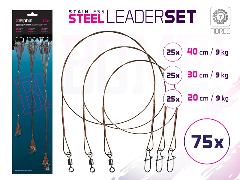 Szett BOMB! acél előke karabinerrel / 7 szál