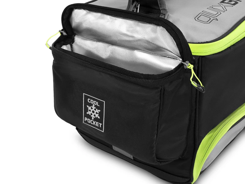 A QuixBAG a tetején található praktikus fogantyúnál fogva vagy a csomagban található vállpántot használva könnyen szállítható. A táska nagyon jól kidolgozott, erős cipzárral és műanyag húzókával rendelkezik. A design remekül passzol a REAXE sorozathoz; a fekete és szürke színkombinációja jellemzi, élénk zöld színű cipzárakkal és mintákkal.